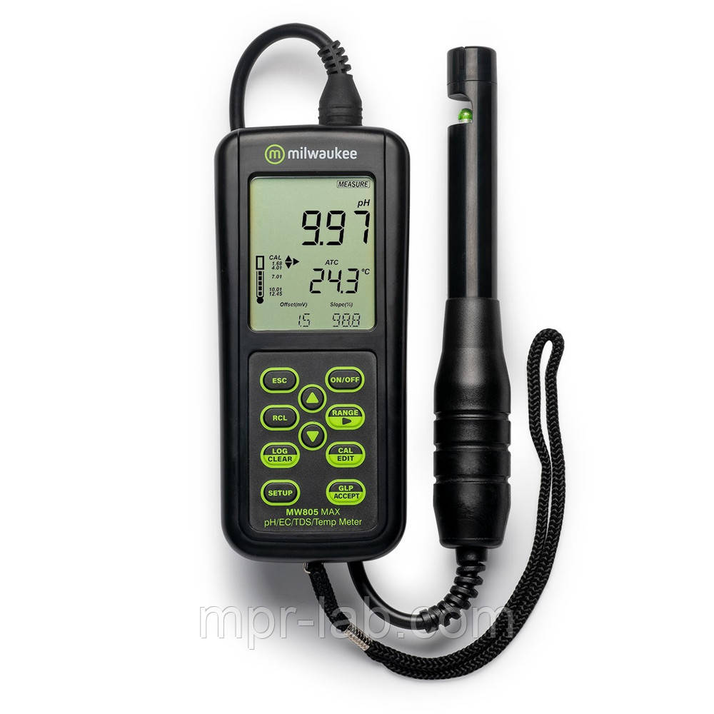Комбінований вимірювач 4-в-1 Milwaukee MW805 MAX pH/EC/TDS/Temp дозволяє вимірювати pH, EC (провідність), TDS та температуру з одним лічильником та одним датчиком.