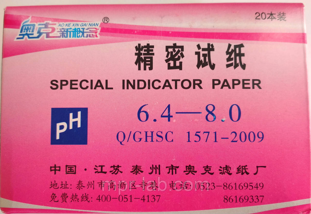 Лакмусовий папір призначений для вимірювання кислотності (водоподібного показника) у рідкому середовищі. Ці тест-смужки чудово підійдуть для визначення pH у діапазоні від слабокислого до лужного, а саме від 6.4 до 8.0 з кроком 0.2/0.3 рН, що дає високу точність вимірювання.